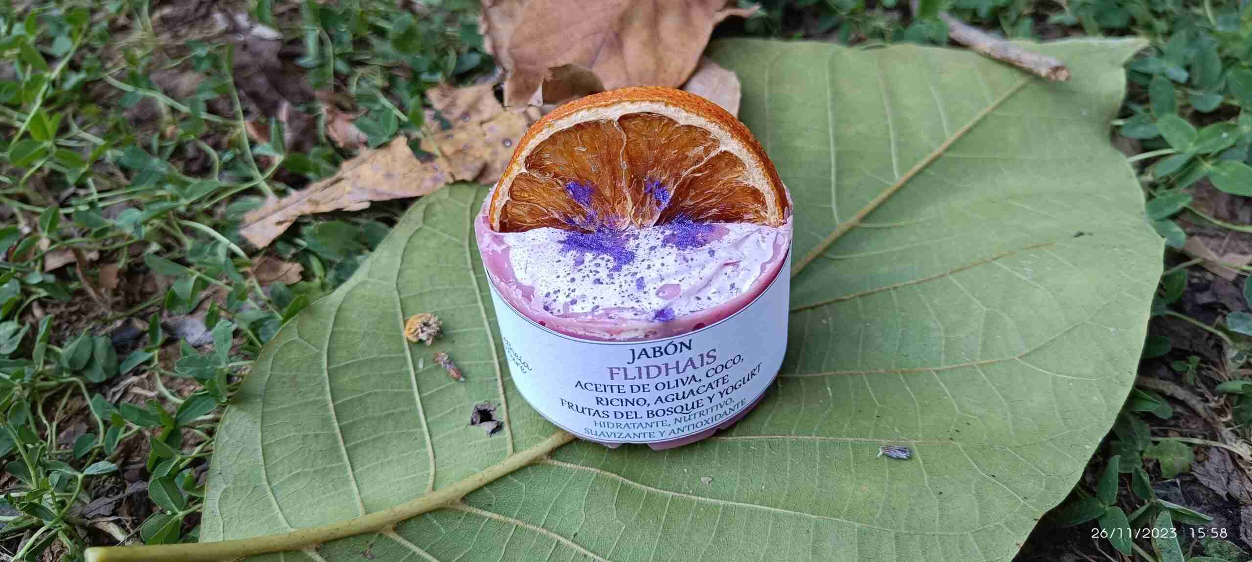 **Jabón Flidhais Renovación Frutal: Jabón de Frutas del Bosque con Aceites de Oliva, Coco, Ricino, Aguacate y Yogurt, Perfumado con Aceite Aromático de Frutas del Bosque, en Honor a Flidhais**