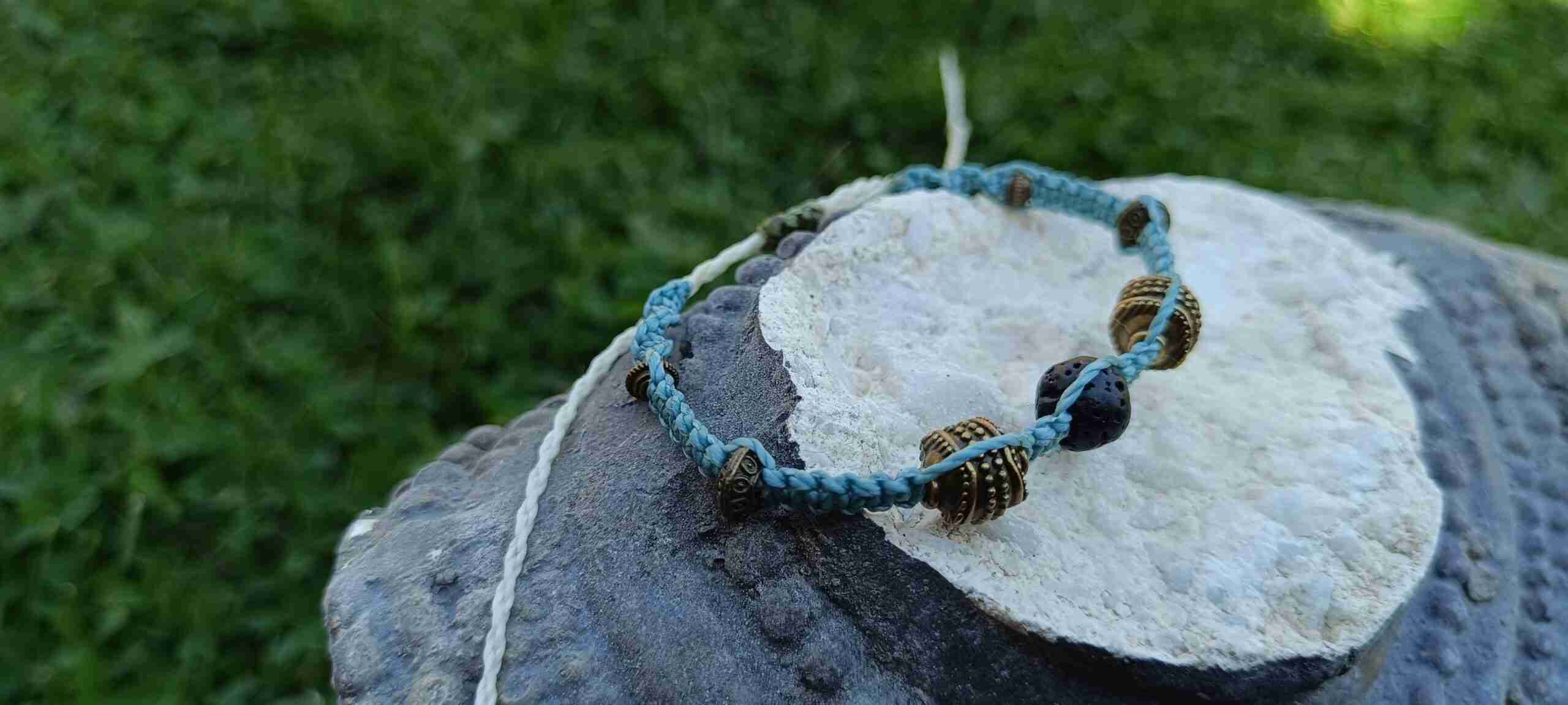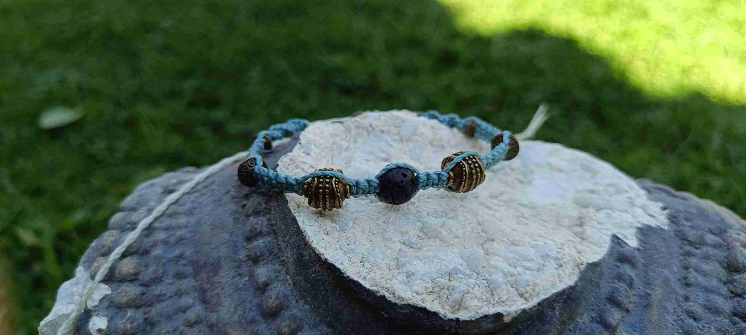 La pulsera de macramé «Etna» es una verdadera obra de arte que combina la belleza del diseño con la energía única de las piedras naturales. El hilo de macramé celeste le confiere un aspecto elegante y fresco, mientras que las cuentas de bronce añaden un toque de brillo y sofisticación. Sin embargo, lo que realmente hace que esta pulsera sea especial es la inclusión de la piedra lava, que aporta una poderosa conexión con la energía volcánica y la fuerza de la naturaleza.
